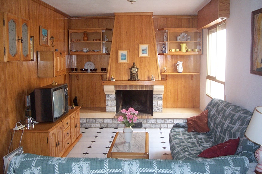 | Salón con chimenea, forrado en madera, equipado y muy cómodo. Muy Luminoso. | Situado en zona muy tranquila, tiene una equipación básica el verano. También está al lado del recinto ferial | |||||||