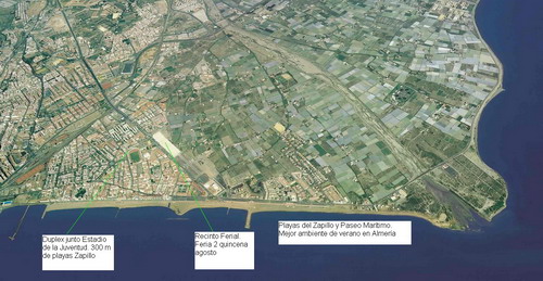 Vista exterior del duplex. La cochera tiene capacidad para 3 coches. Zona muy tranquila, junto al estadio de la Juventud. 300 m aproximados en linea recta a la playa |